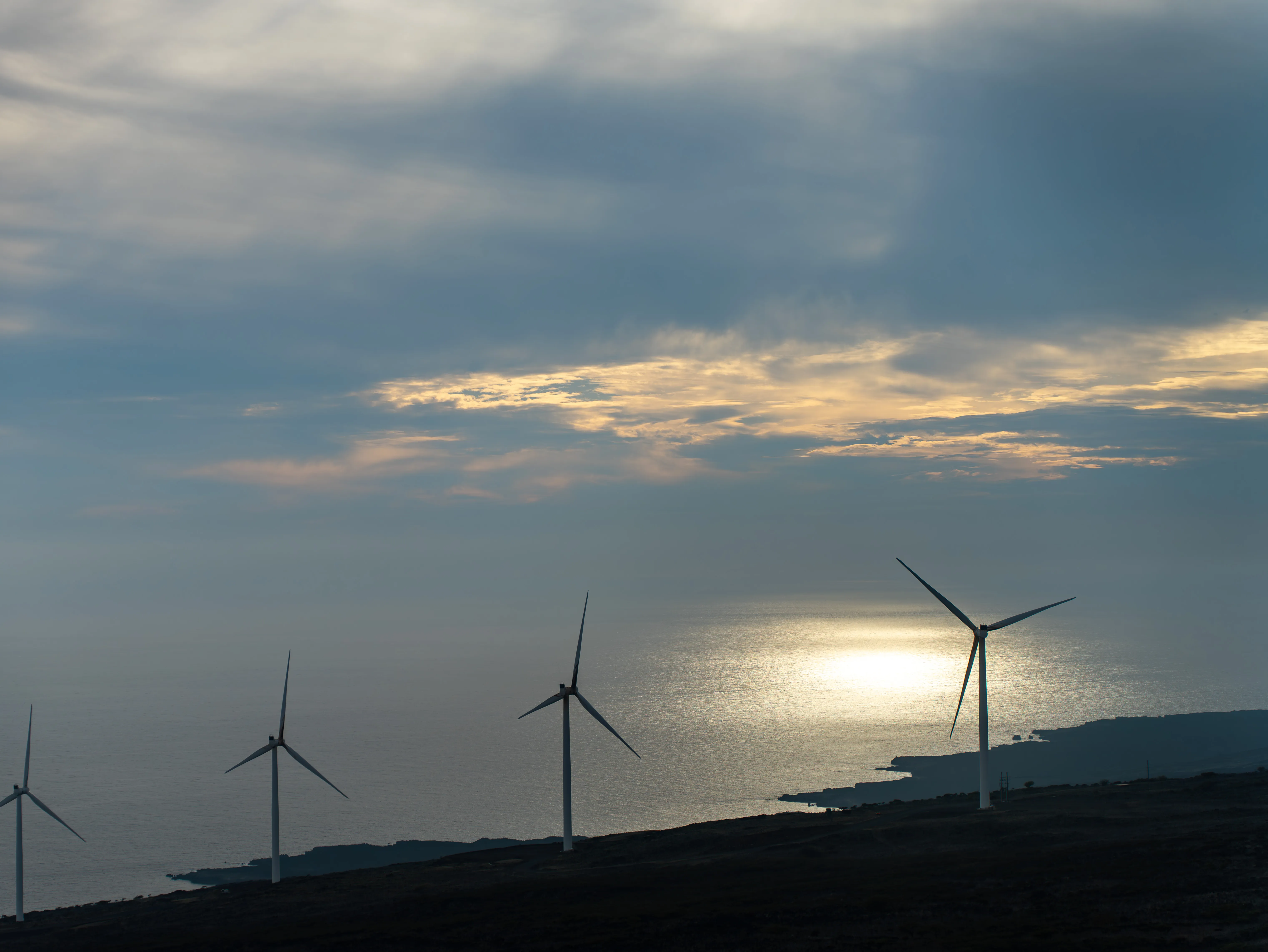 Sunlight, Sea and Wind Turbines (shot on 15 Dec 2025, Maui, HI, USA)